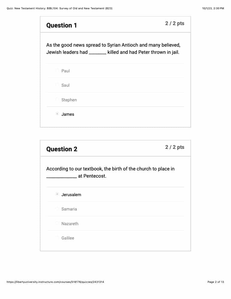 BIBL 104 Quiz 6 Liberty University